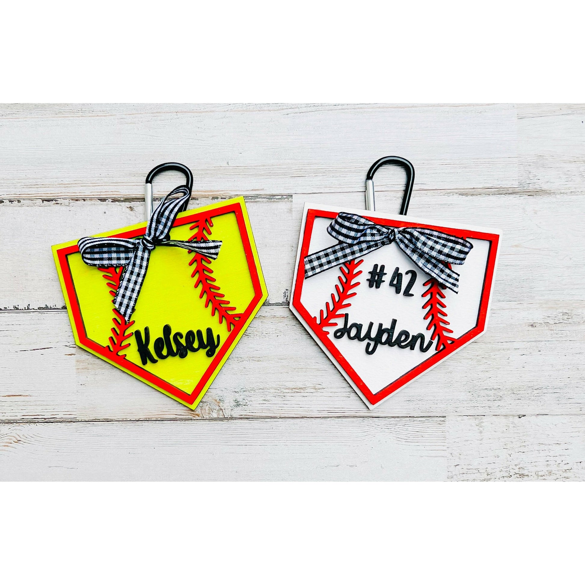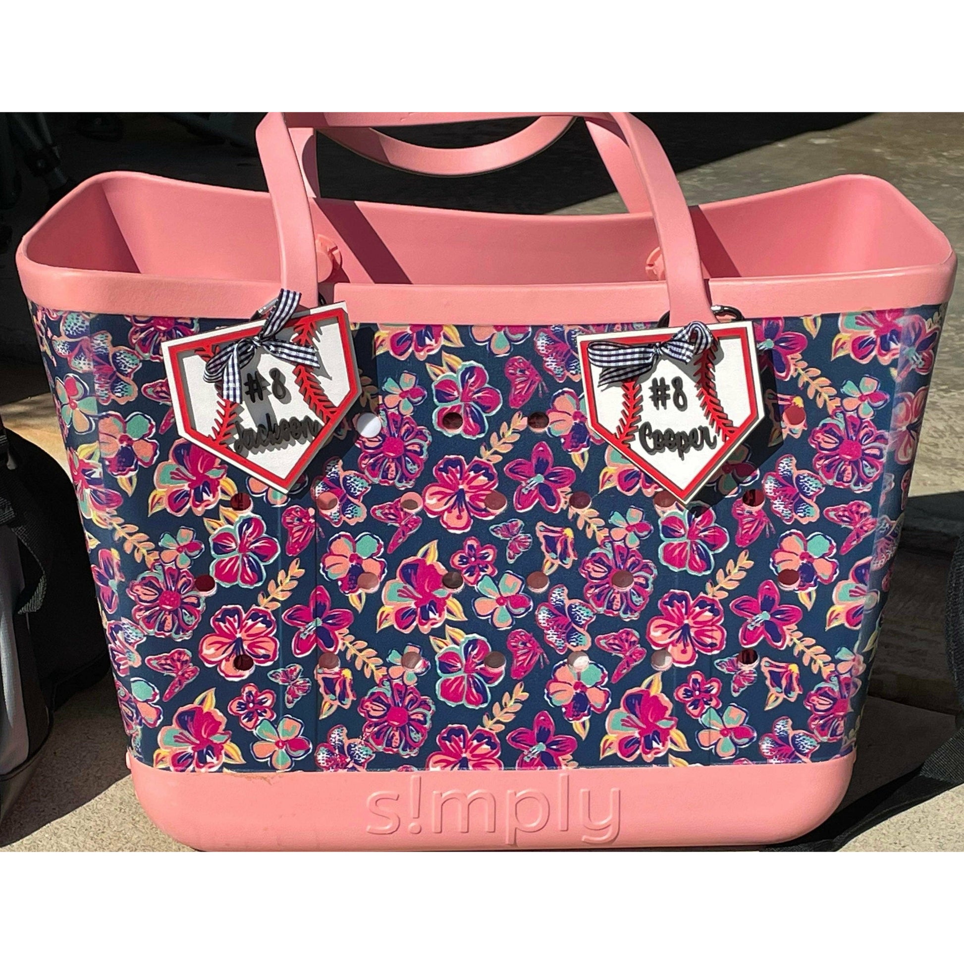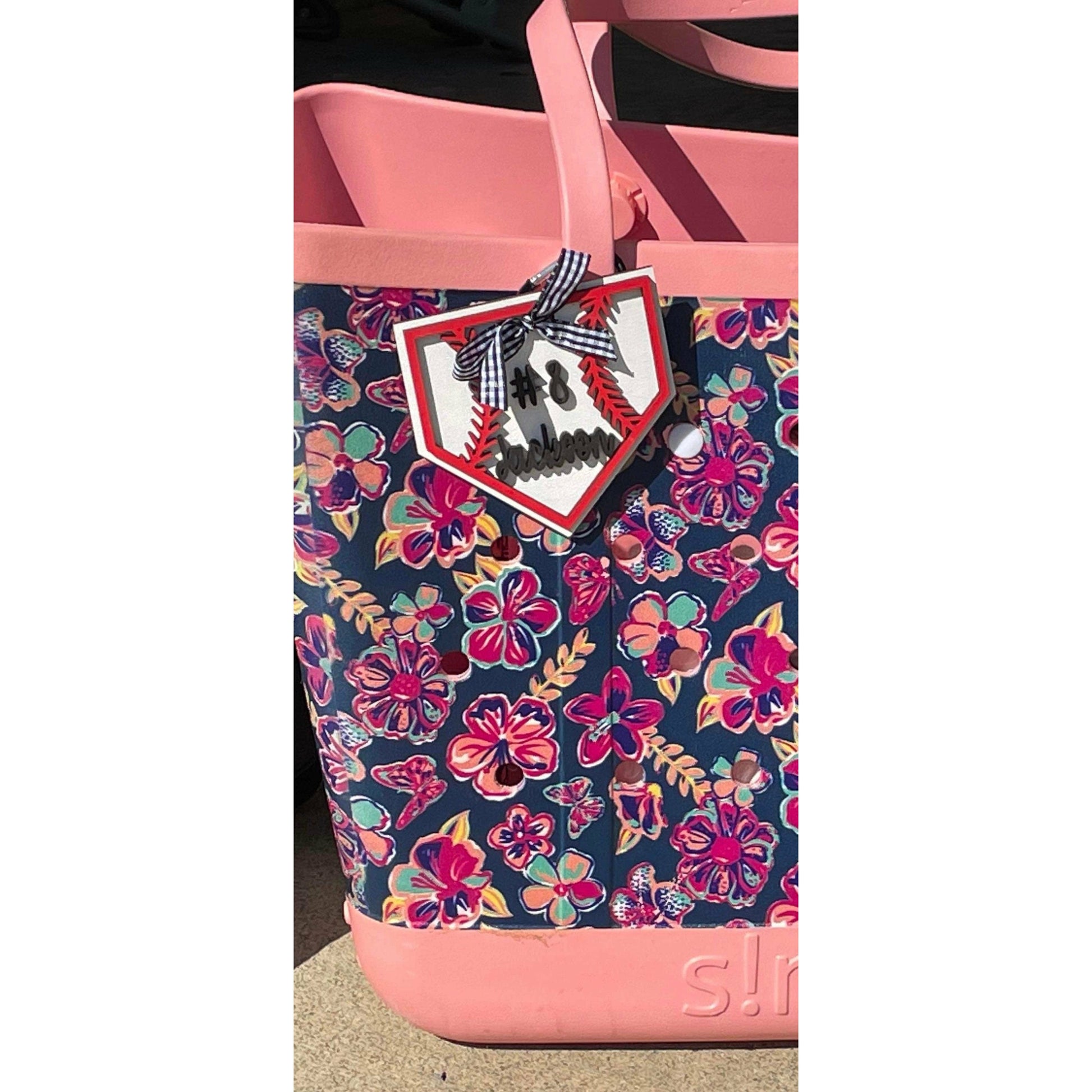 These personalized bag tags are so versatile. They can be used to attach to a sports bag, so players don’t mix them up. Also, these bag tags can be used to show your love for your player, attaching to a purse or Bogg Bag. Each tag will come attached to ribbon and carabiner clip to attach to bag.