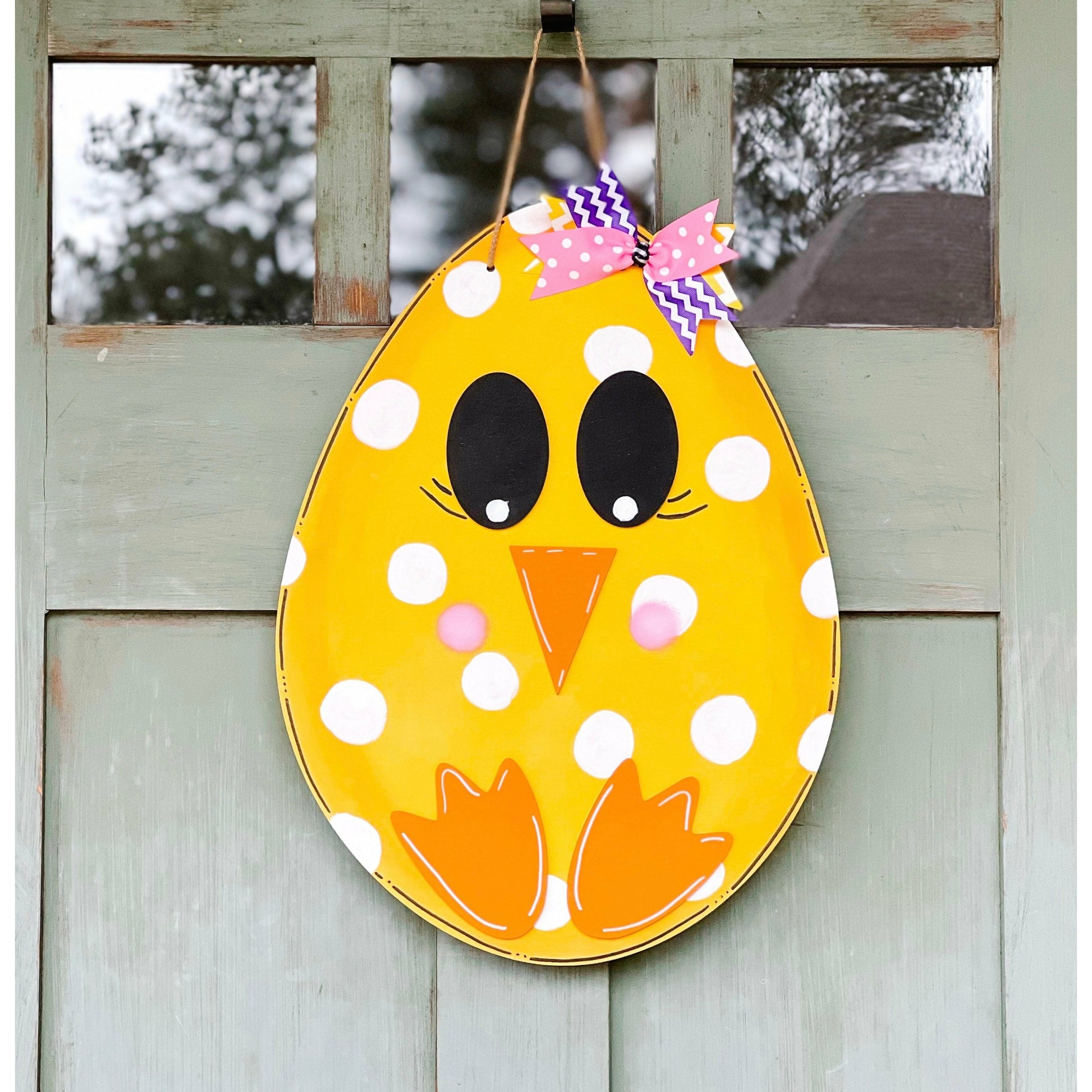 Here chickie, chickie! Get ready for Easter or spring with this adorable 3D door hanger.