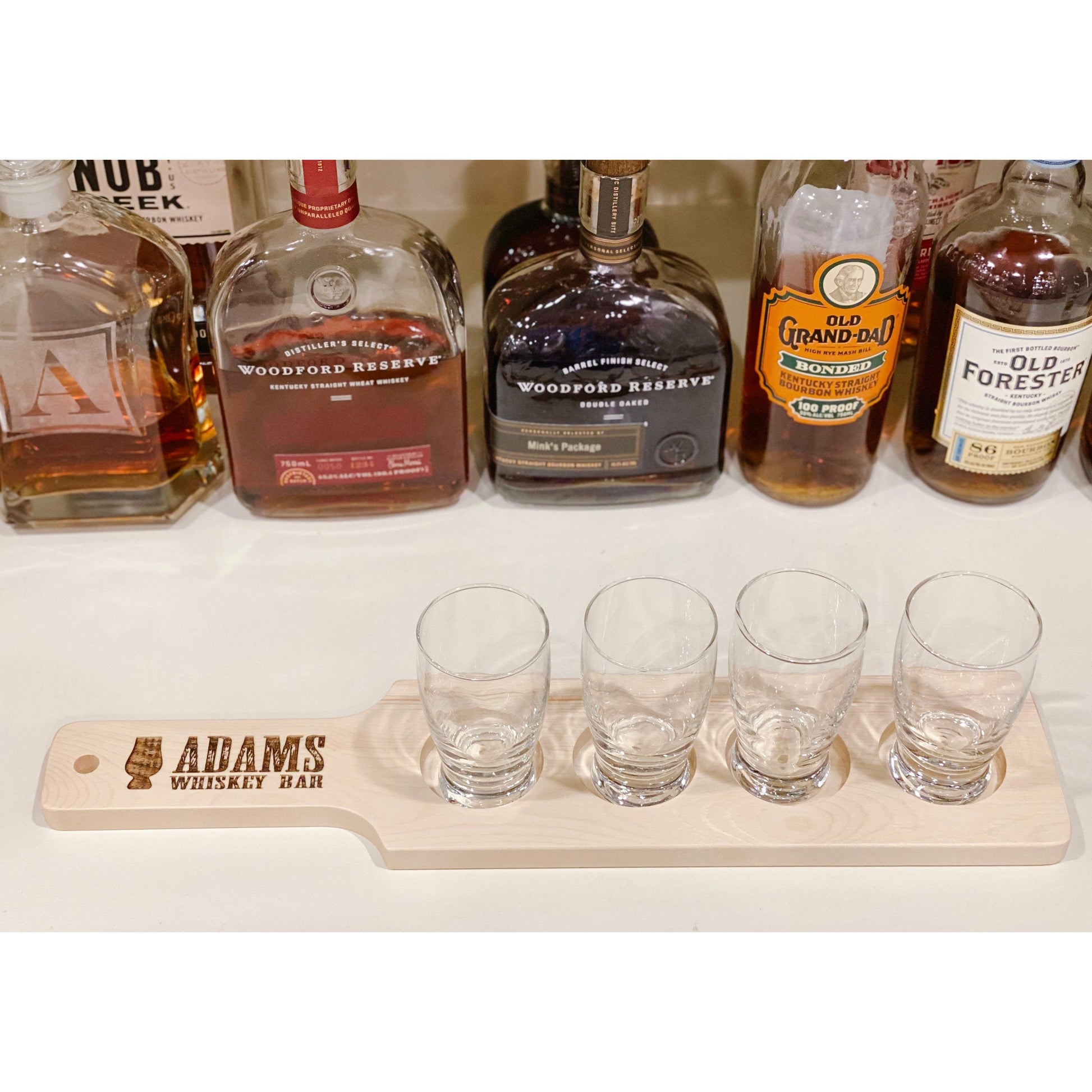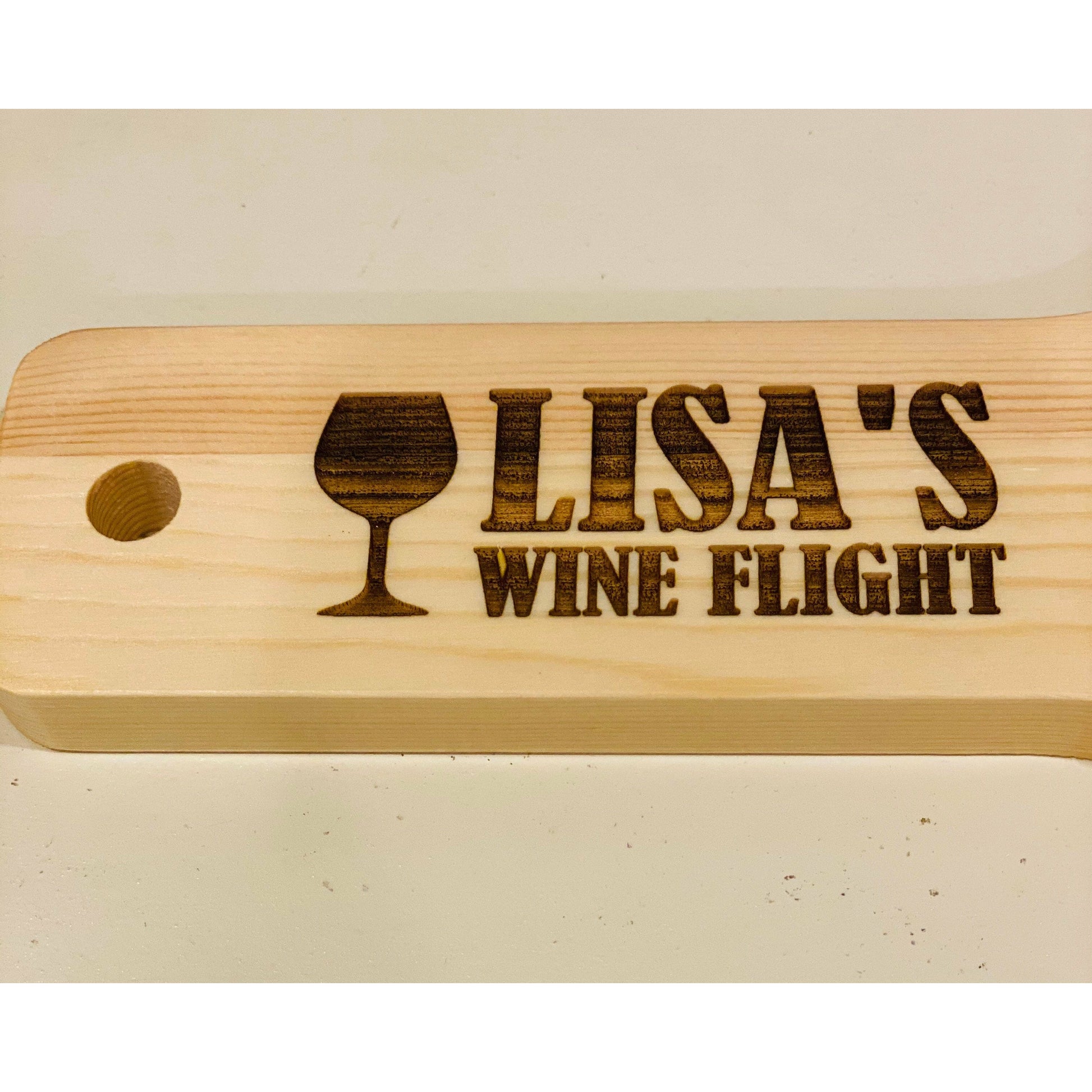 This 18”x4" flight paddle is great for beer, whiskey, wine, bourbon, desserts, etc.! Each board is done with a natural finish and featuring 4 cutouts for the barbary beer tasting style glasses (5 oz. each) Each design is laser engraved into the handle, for a stylish look that will last! 4 each of the barbary beer tasting style glasses are included. Design choices are coming.