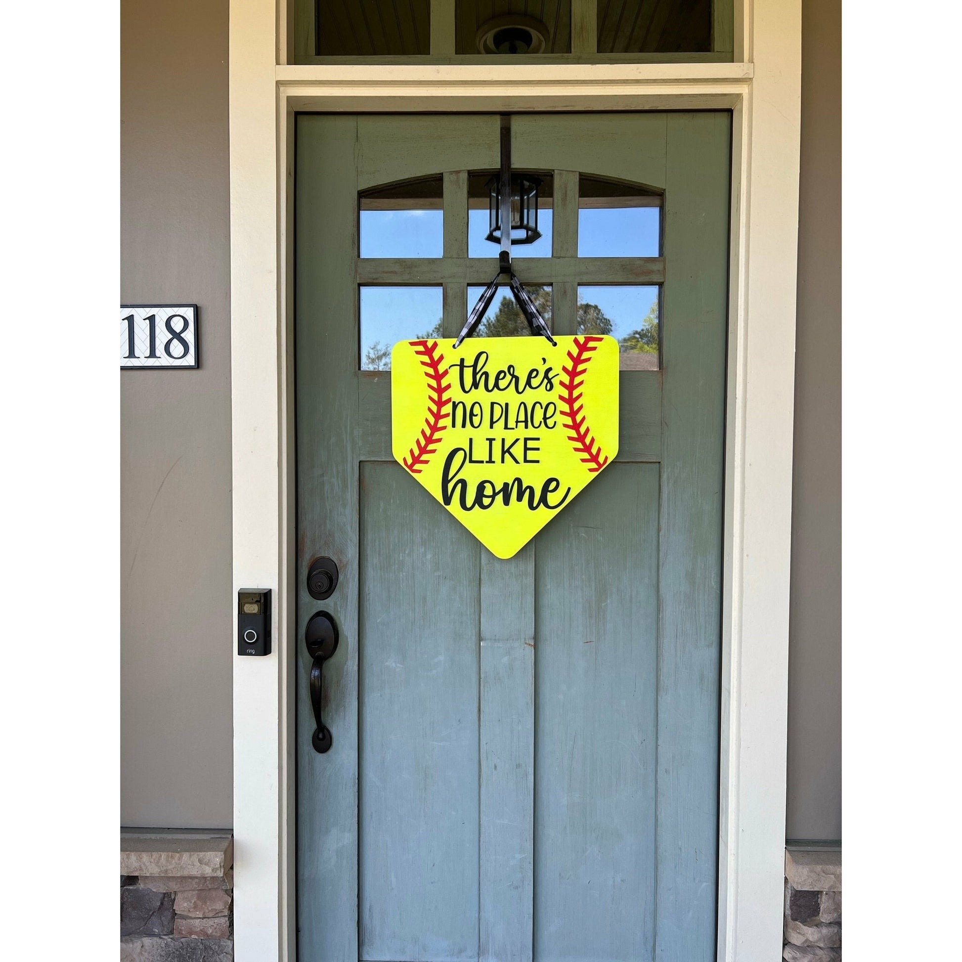 This front door sign is sure to be a hit on your front door. A softball door hanger lets your friends and neighbors know you're supporting your player. We all know there's no place like home but when you're away, it's for a good cause! This baseball door hanger would be great for Father's Day gift from daughter or son.