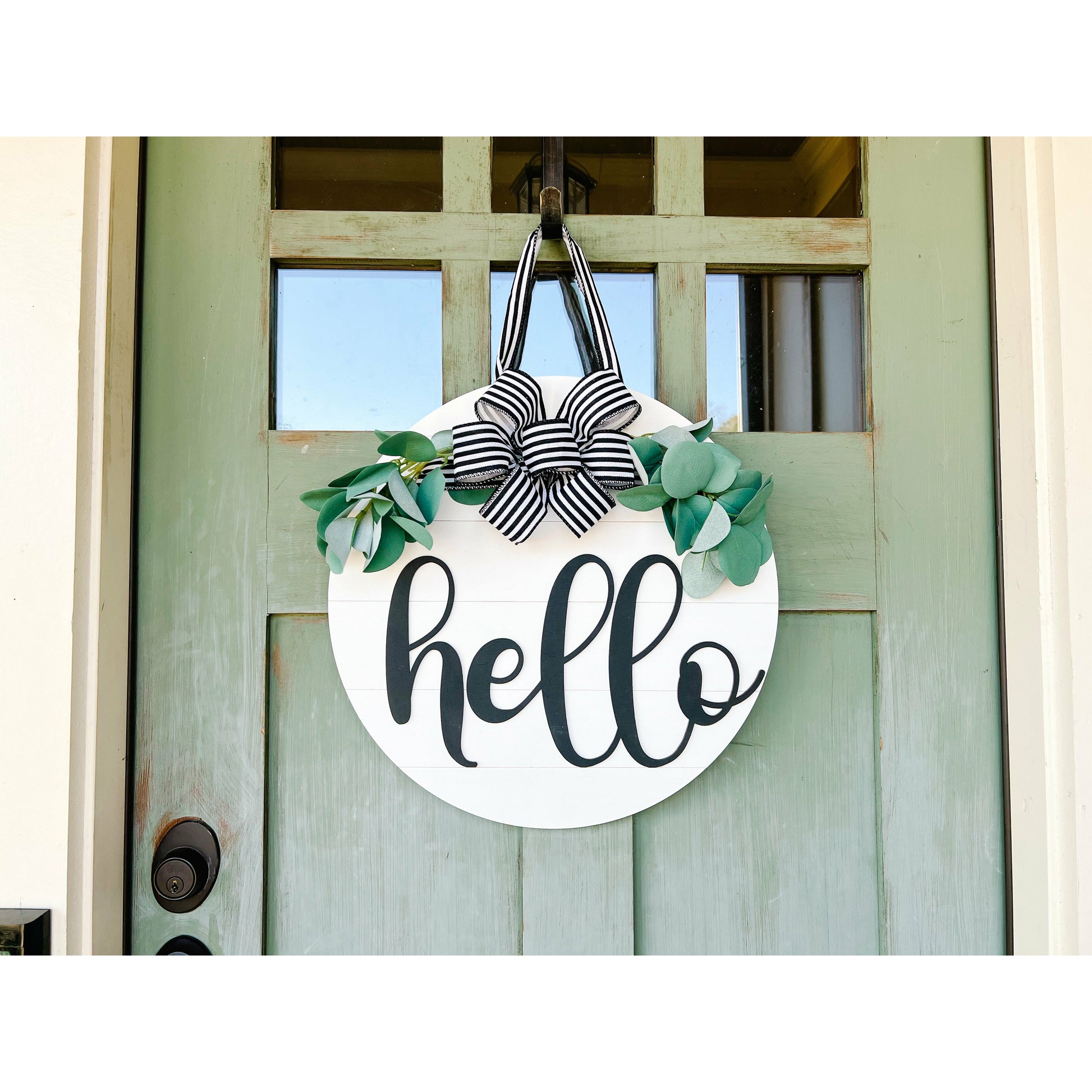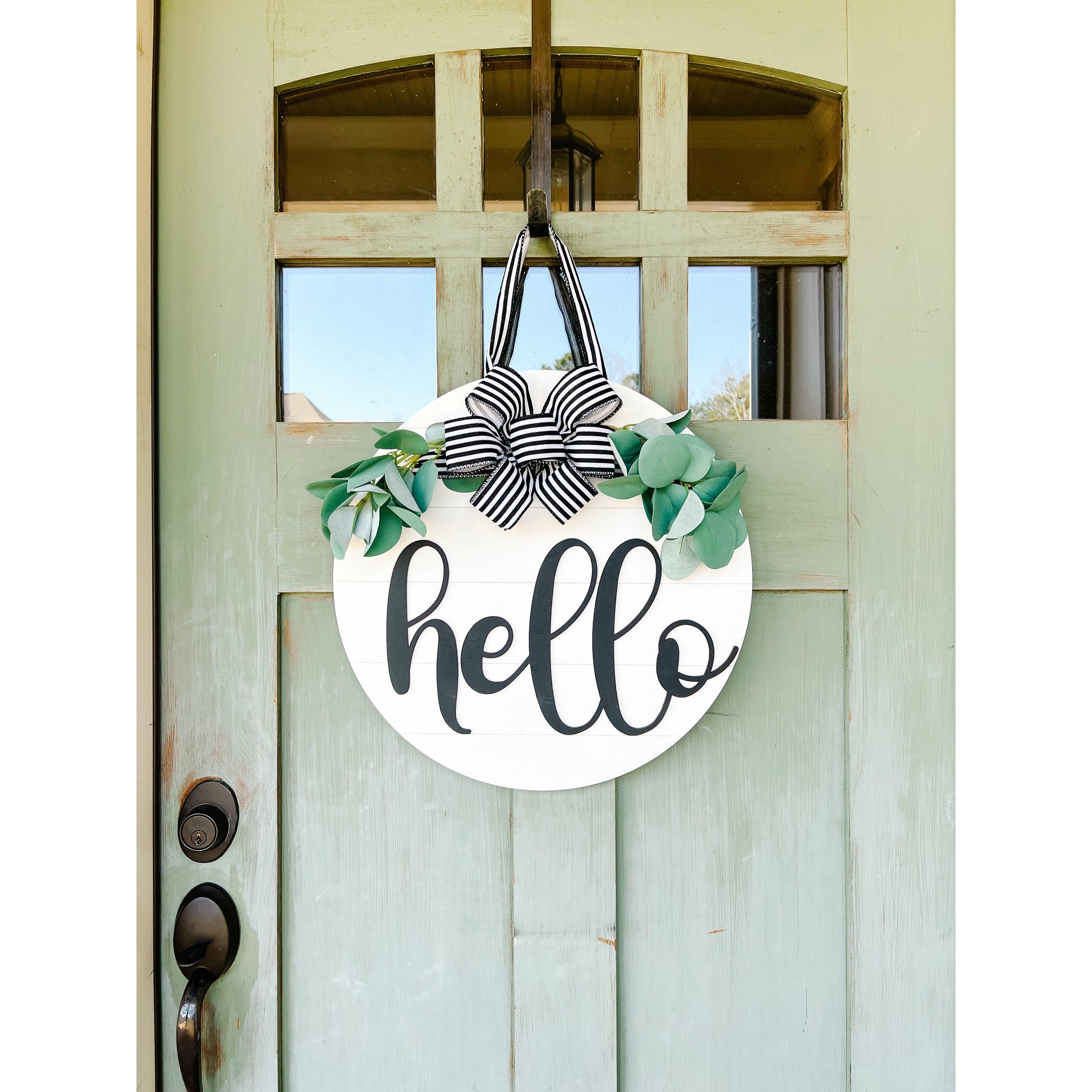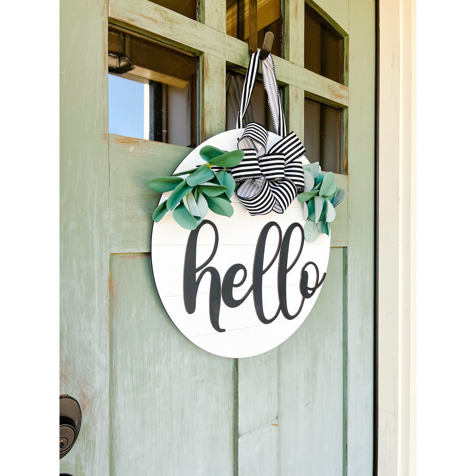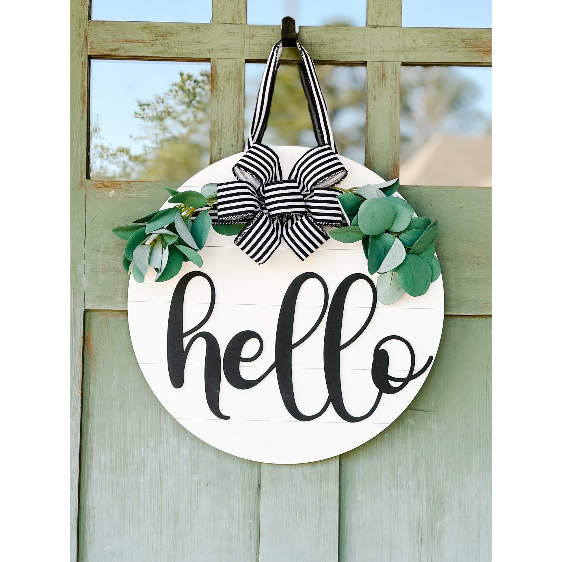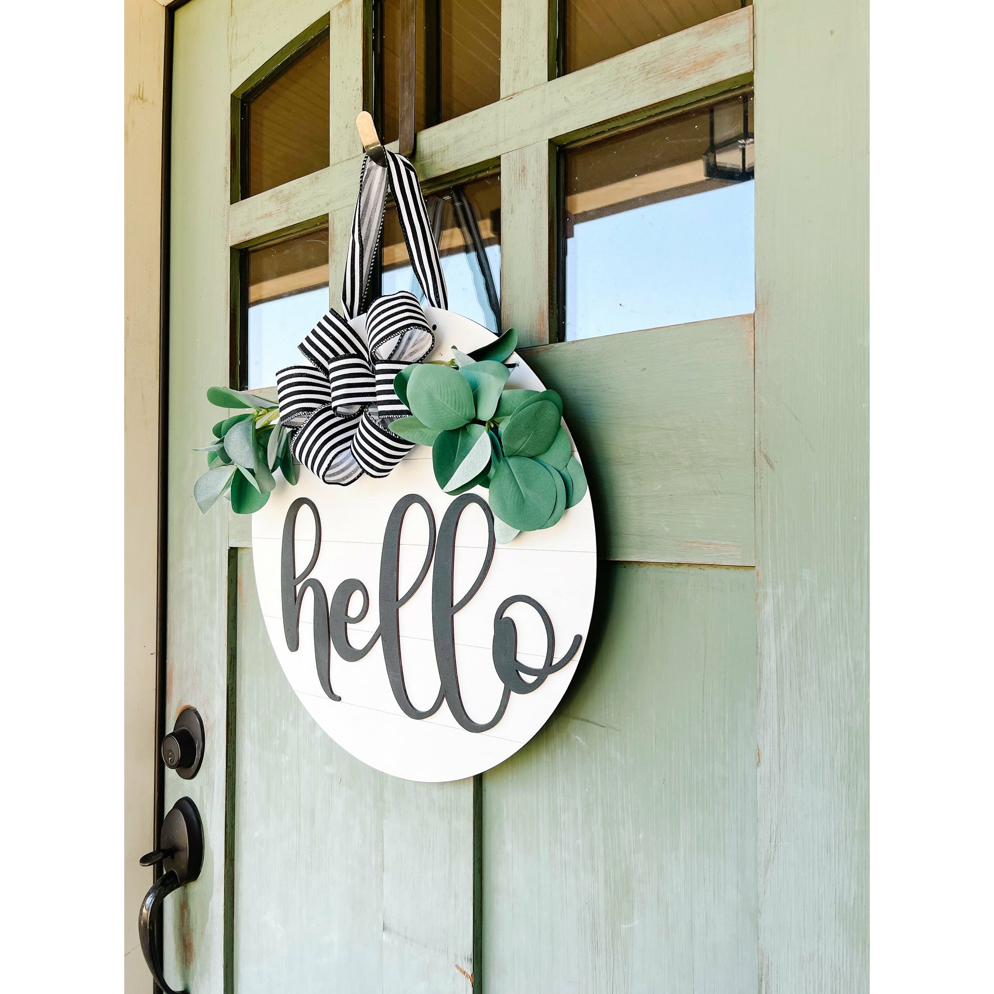 This is a fun and unique sign to spice up your home decor, and is perfect for each season. Greet your guests with a big HELLO!