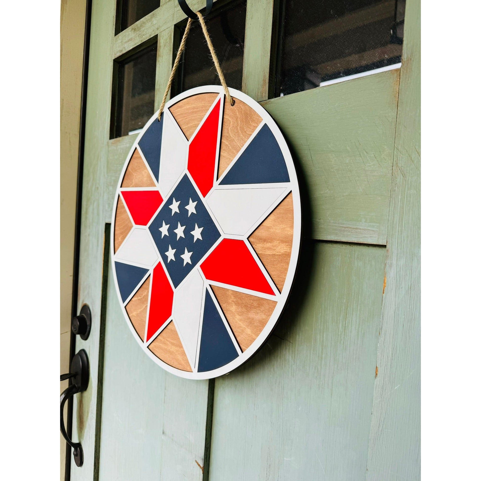 Happy 4th of July!!! Happy Independence Day!! Greet your neighbors and guests with this red, white and blue welcome door hanger.