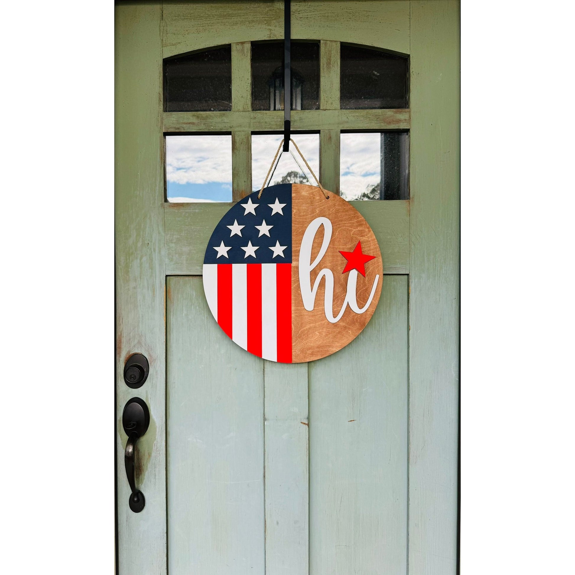 Happy 4th of July!!! Happy Independence Day!! Greet your neighbors and guests with this red, white and blue welcome door hanger.