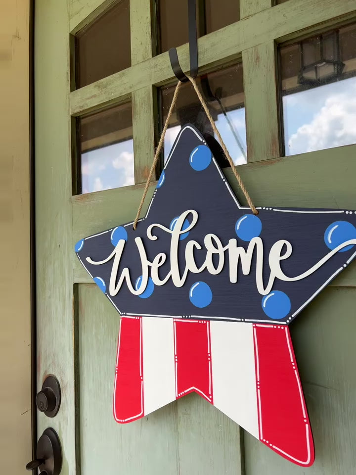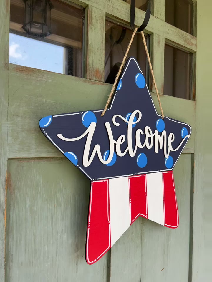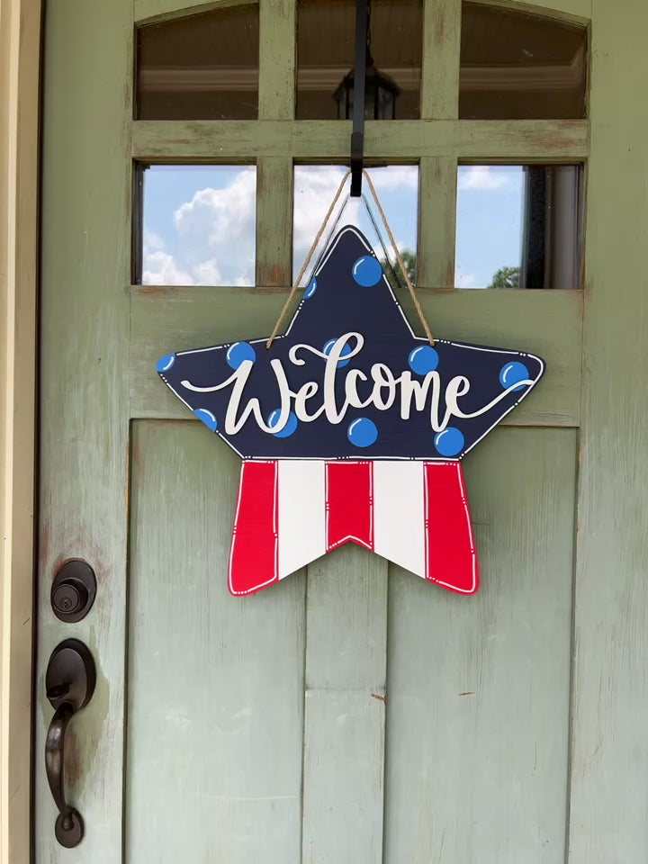 Welcome Star Patriotic Door Hanger